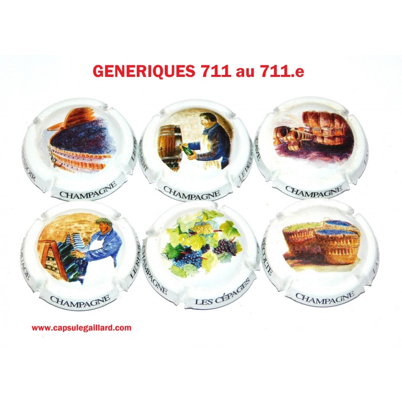 N°711 - SERIE DE 6 CAPSULES DE CHAMPAGNE - GENERIQUE "Cave et vigne"